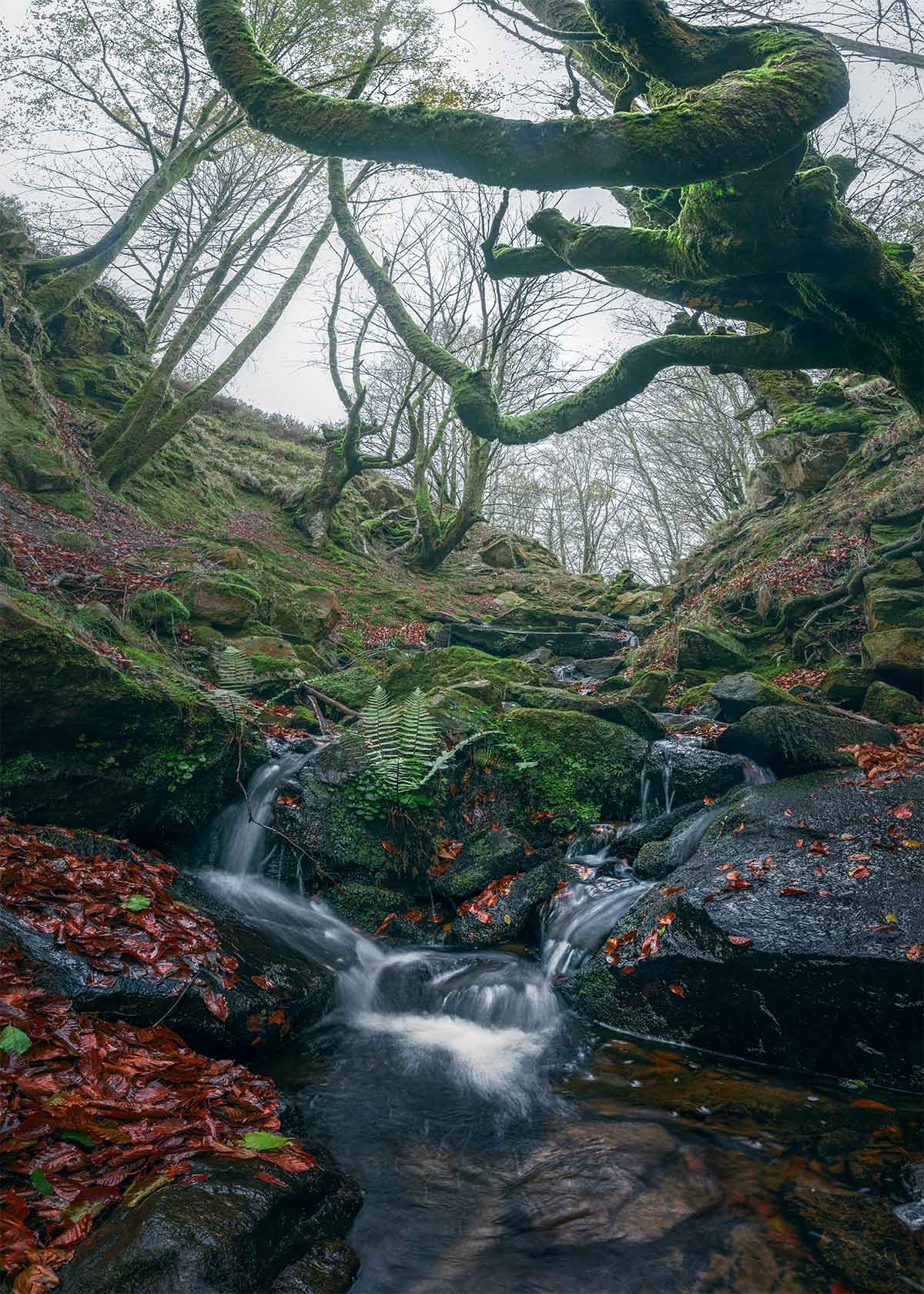 Cada captura es un estudio sobre la textura y el tiempo. En la costa, exploramos el Flysch de Zumaia y los rincones mágicos de Gaztelugatxe, utilizando largas exposiciones para convertir la furia del mar en seda y resaltar la geometría de las rocas. En el interior, nos perdemos en la niebla de los parques naturales como Gorbeia o Urkiola, donde la luz se tamiza entre las ramas para crear escenas que parecen sacadas de una leyenda.